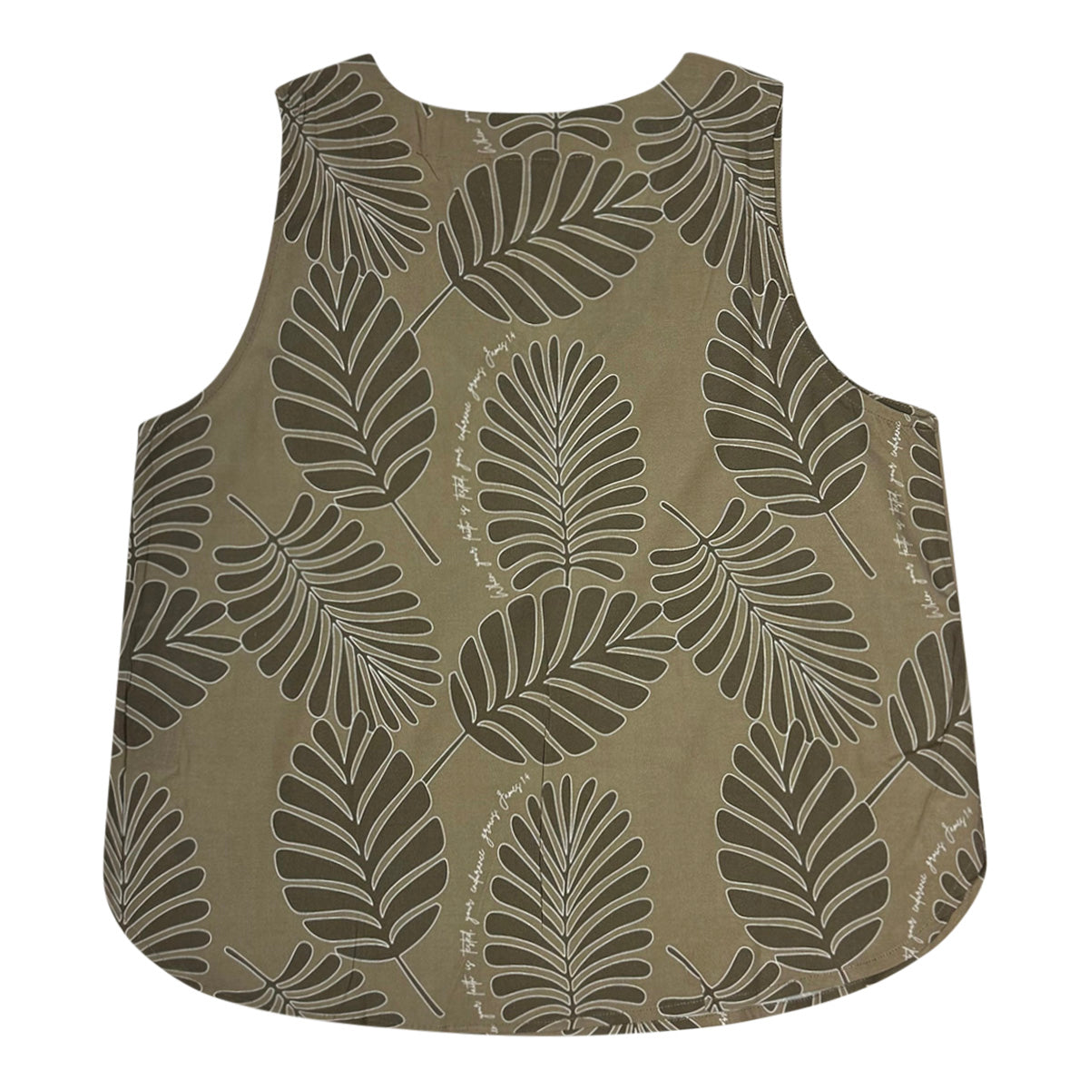Blessed lightweight women’s tank with embroidered Blessed logo on chest. Pairs perfectly with our Ahonui Flowy pants. In an olive colored leaf print with the scripture James 1:4