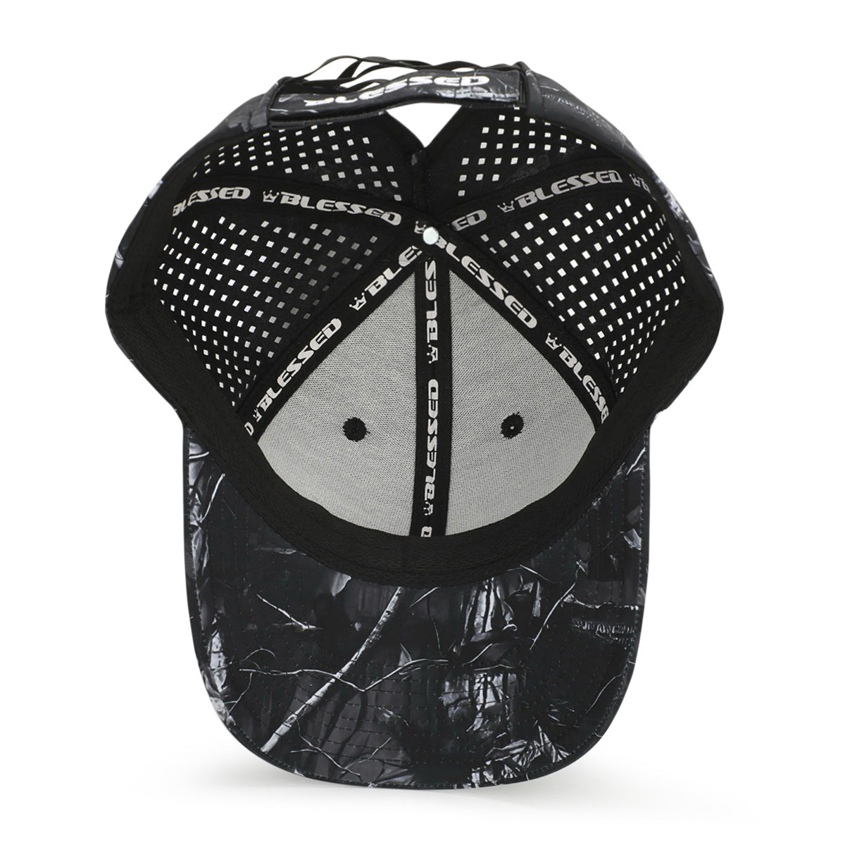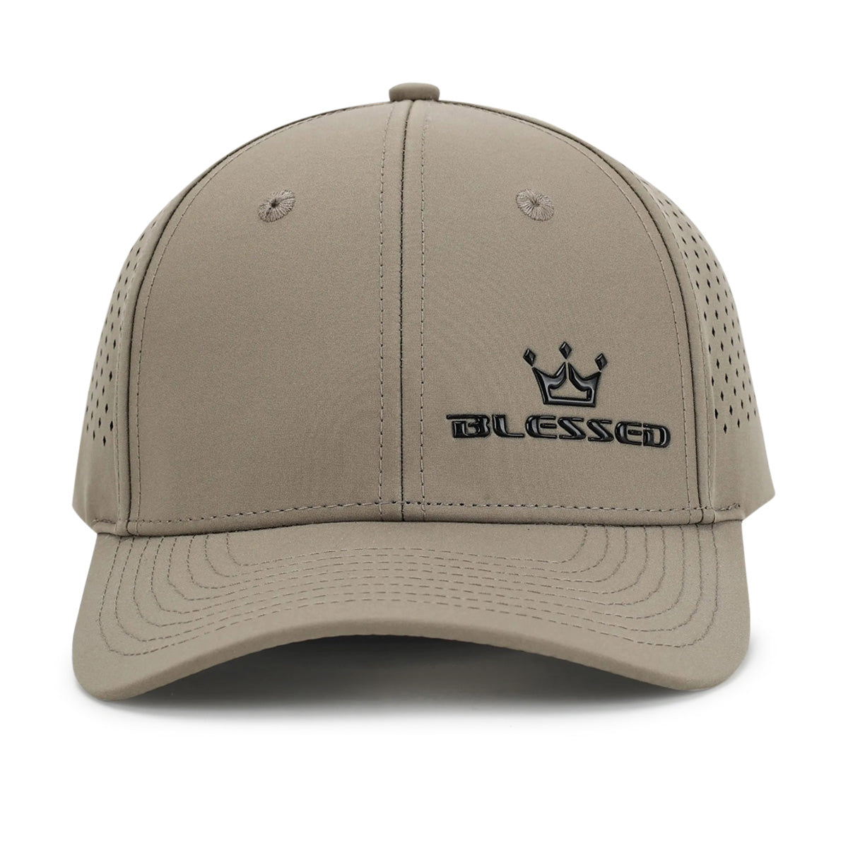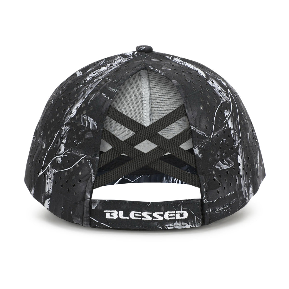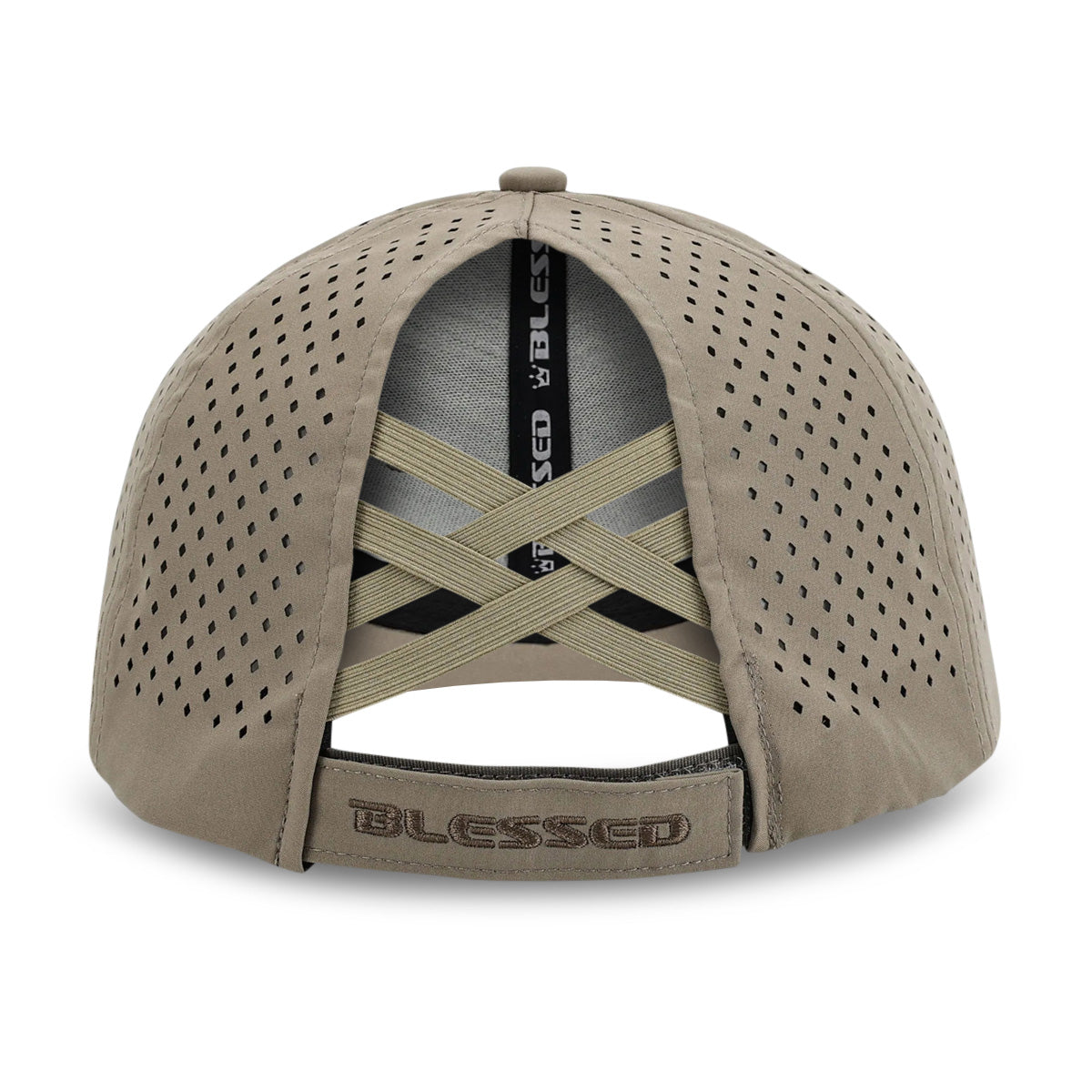 Blessed Logo Dri-Fit adjustable hat created just for the ladies. Never search for a rubber band because our innovative cross-cross elastic design will conveniently and efficiently hold your hair at a high, mid or low level. It also allows for a cute messy bun to keep your hair high and out of the way while you are on the move. Made with a dri-fit material that can be used in the water, it floats and can be washed. Water effortlessly beads off this hat. Diamond design vent holes to mimic the diamonds in our logo. Front silicon logo and embroidery on back velcro make this the hat you will want in every color.