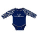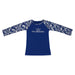Blessed youth swimwear, available in pink heliconia and blue ocean waves. Toddler and youth sizes are available in a raahguard style longsleeve tee.