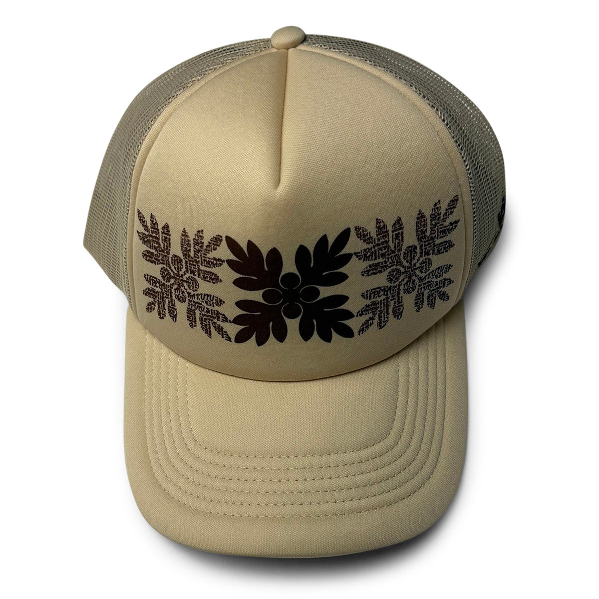 This hat features a ulu quilt design with our embroidered logo emblazoned on one side and snap closure-perfect for the on-the-go busy mom or while enjoying your next beach day.